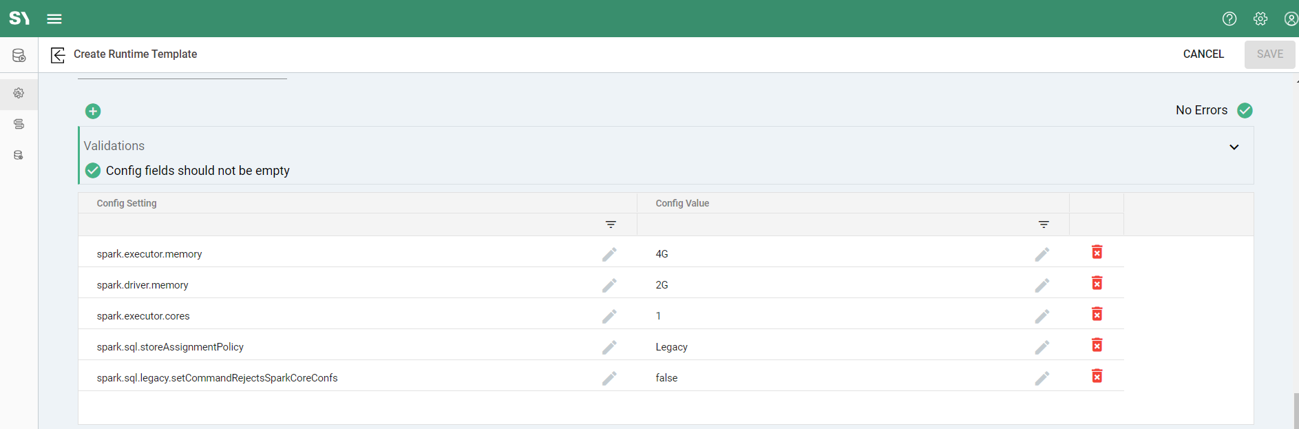 There are also Spark configurations available. Key settings related to the number of cores and memory are defaulted but can be adjusted as needed. Other values available for configuration are detailed in the Apache Spark documentation on Spark Configuration.