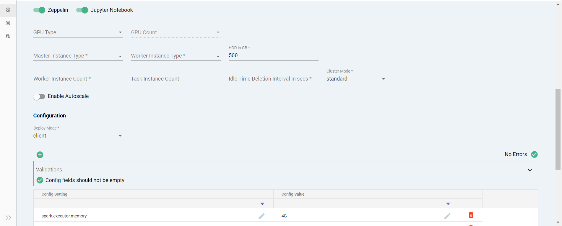 9. Zeppelin (Toggle): Enables the Zeppelin notebook for interactive data analytics and visualization.