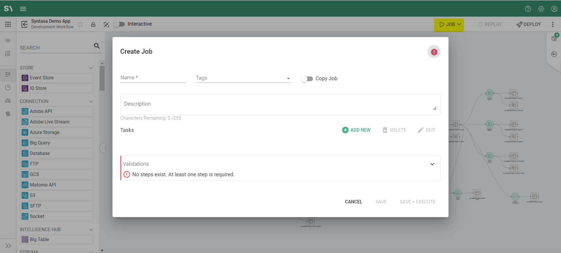• Save + Execute:  This option saves the job and also initiates its execution immediately.