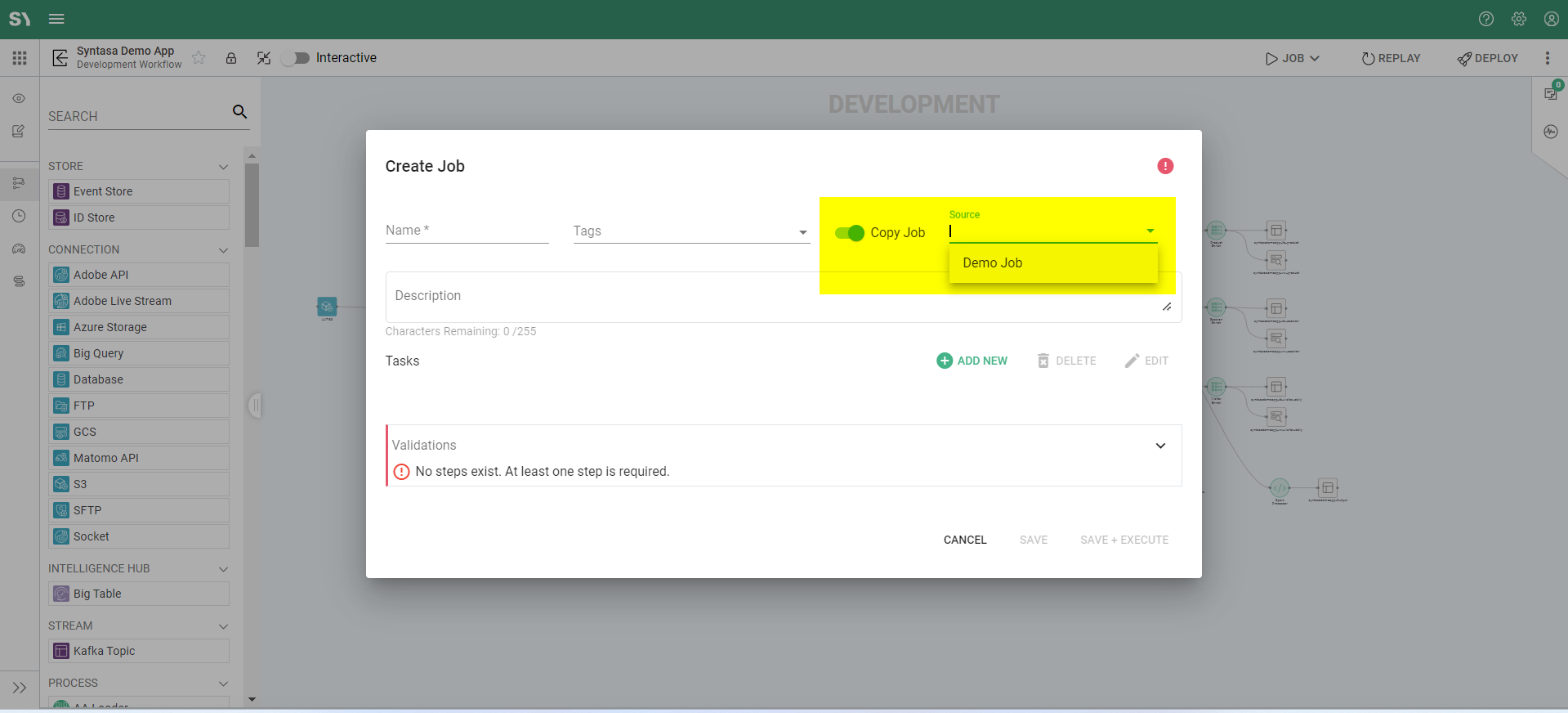 Note: You can only copy jobs available within the same application and environment (dev/prod).