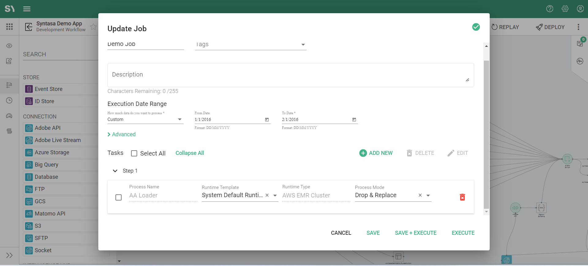 - Save + Execute: It will save the new configuration and immediately execute the job