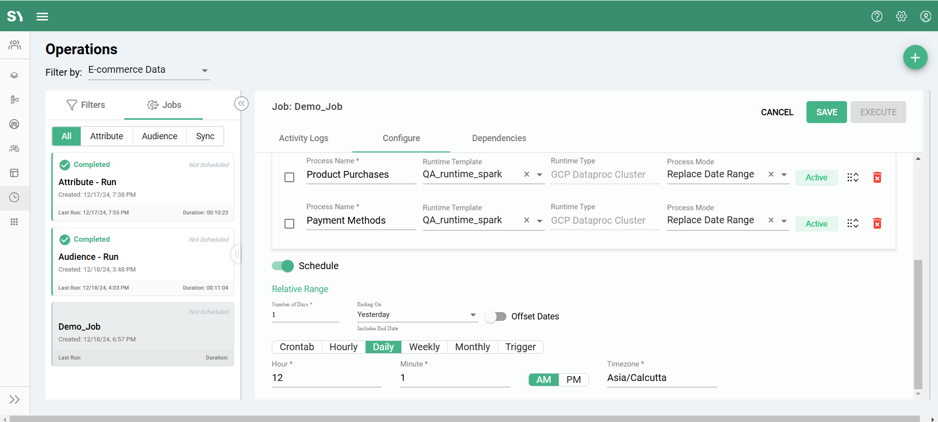 You may encounter two ad-hoc jobs on this screen: Attribute-Run and Audience-Run. These jobs are triggered when attributes or audiences are executed from the Attributes or Audiences screens. Just so you know, these jobs cannot be configured or scheduled.