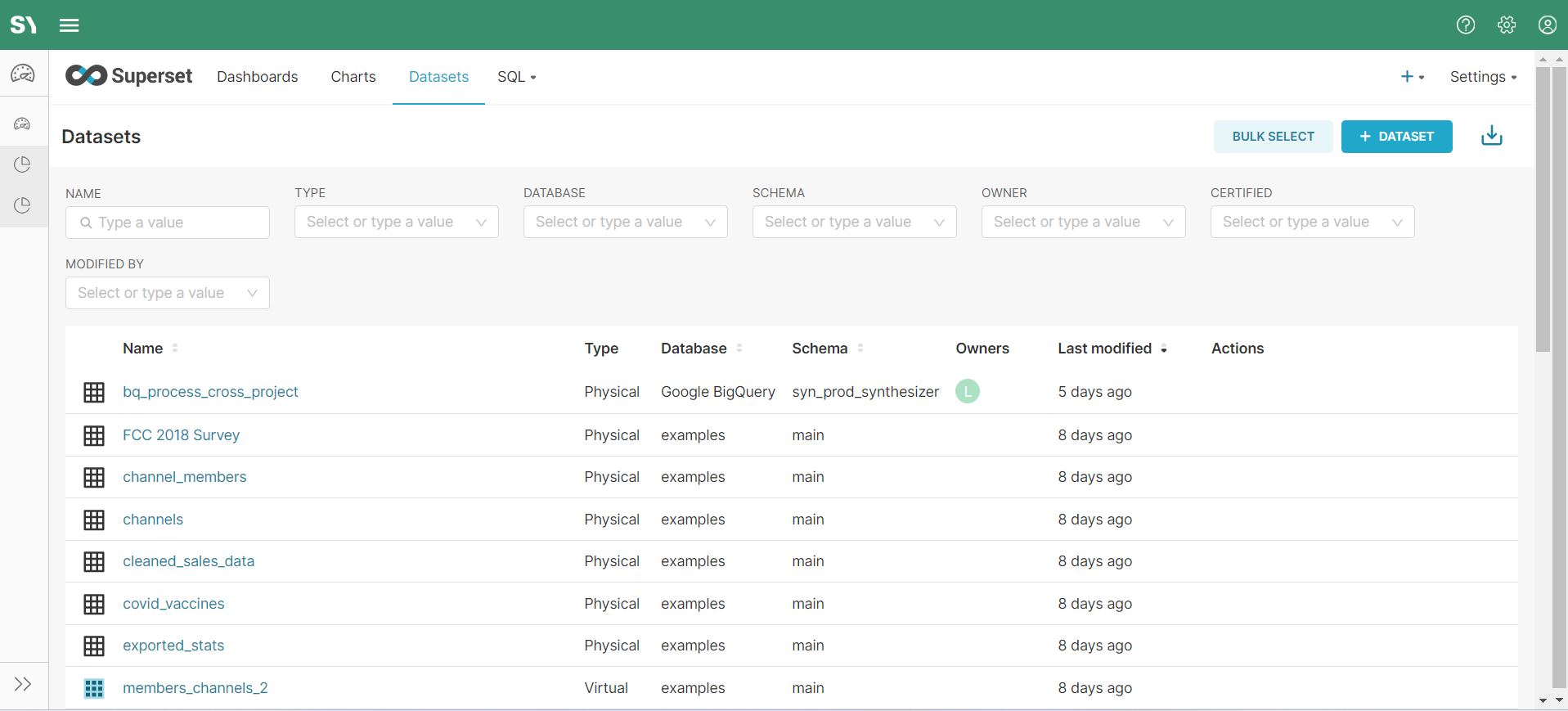 In the context of creating visualizations, datasets play a crucial role. They serve as the intermediary between your raw data stored in a database and the visual representations on your dashboard. This guide will help you understand what datasets are, how they facilitate the creation of charts, and how to create new datasets in Superset.