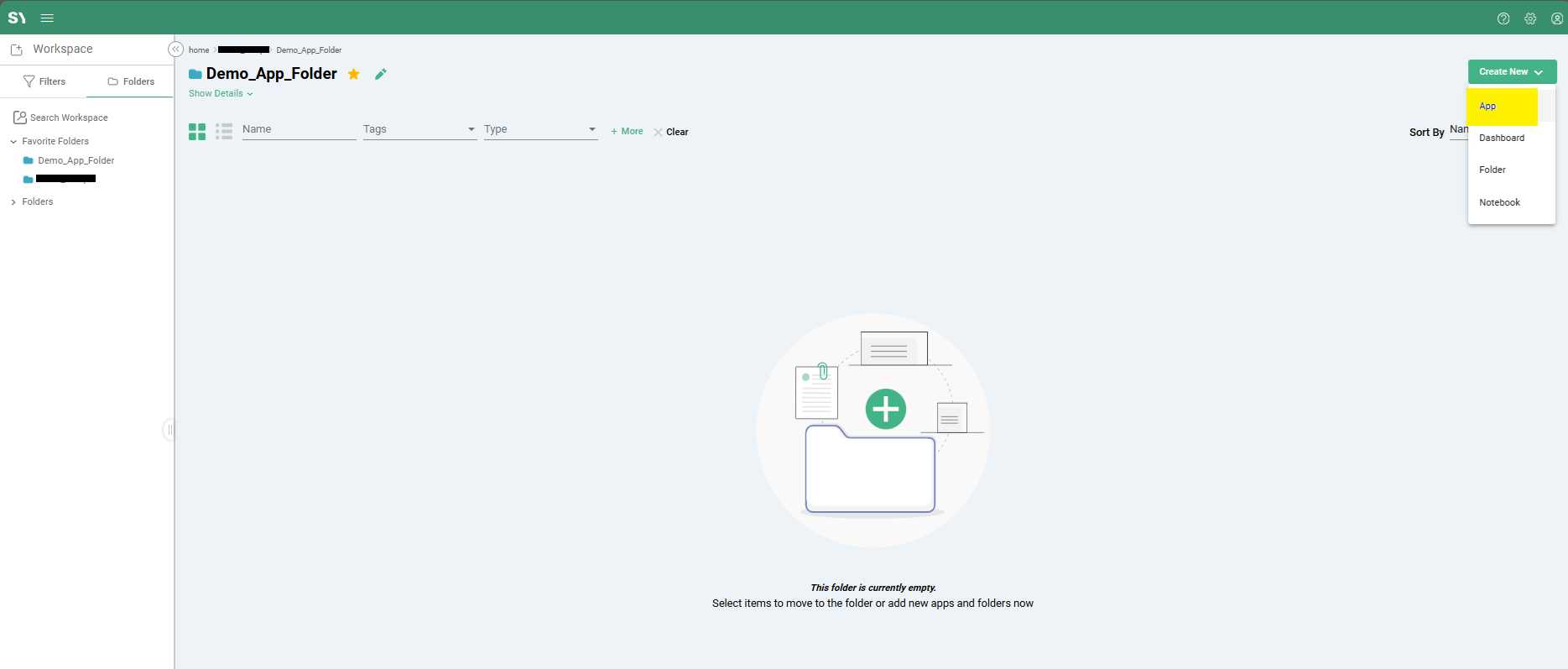 Organizing Your Apps: While the workspace allows you to create Folders for better organization, we'll be using the pre-existing "Demo App Folder" for this guide.