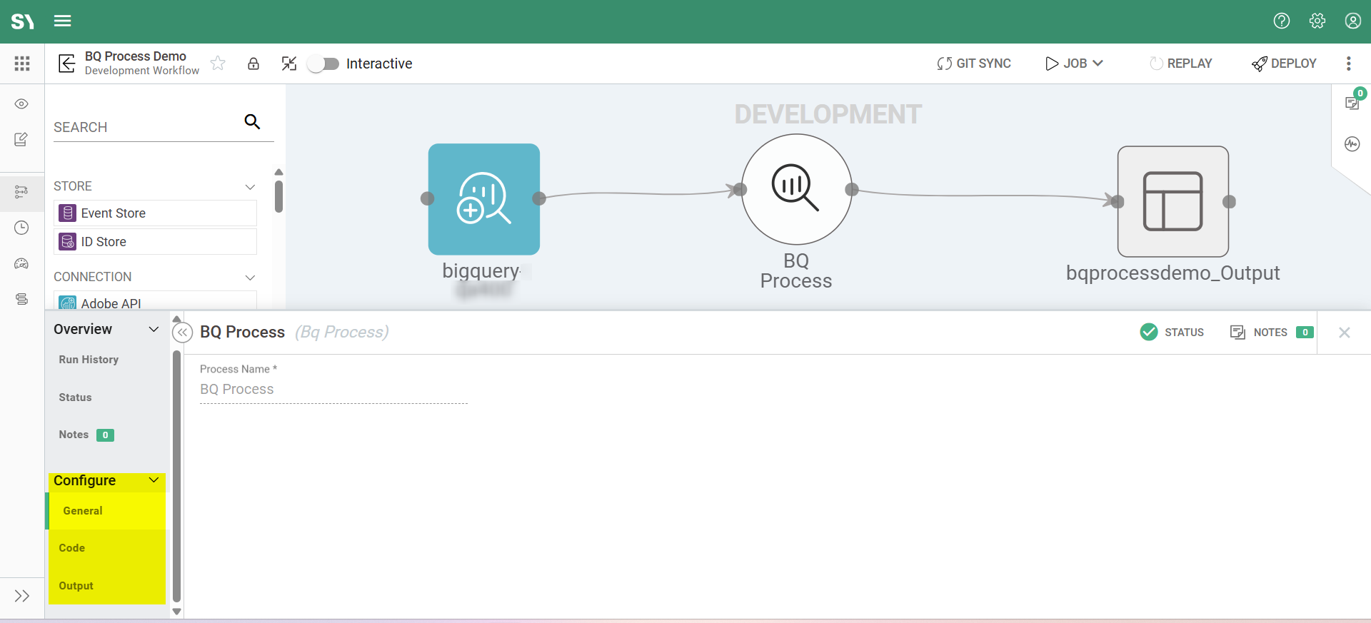 Once the BQ Process has been configured, it is ready for execution. You can either create a new job or use the Interactive Mode to run the process in a development environment for testing and validation.
