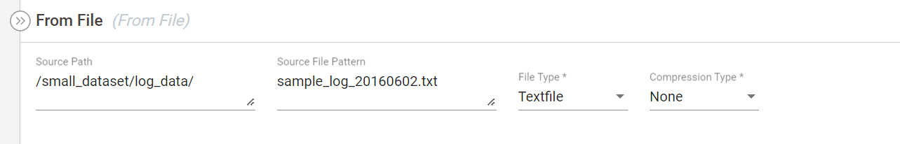- File Type: Specifies the type of file to process, such as Tar, Textfile, Zip, Parquet, or Avro.
