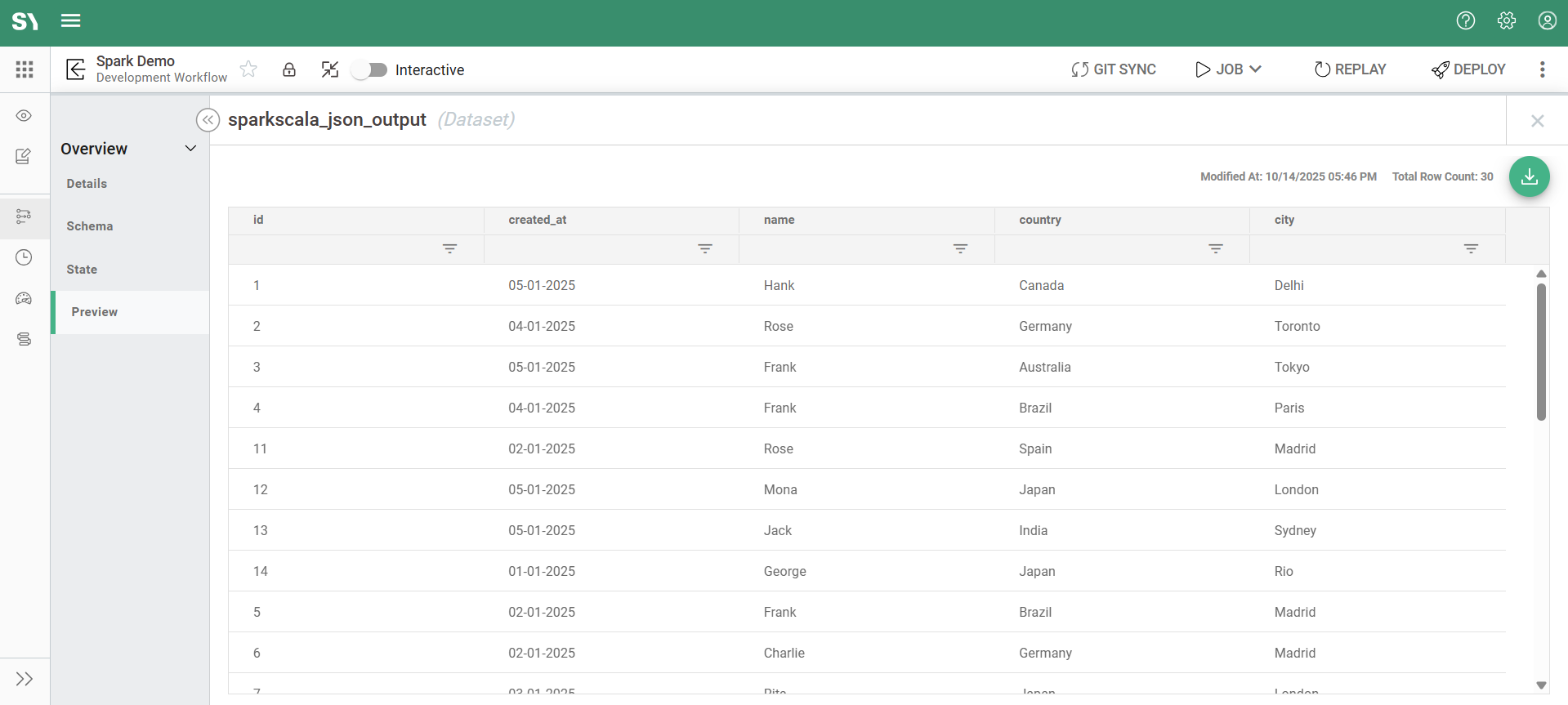 • New columns (name, country, city) are added to the DataFrame using these UDFs.